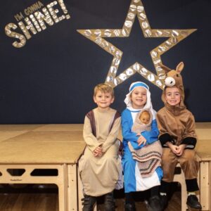 The Year 2 children gave four stunning performances of this year’s Nativity ‘I’m Gonna Shine’ by Out of the Ark Music. True to the name, every cast member shone and couldn’t be more proud of the singing, acting, harminising and Makaton sign language on display. Well done Year 2!